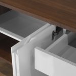 O Buffet Maia 140cm é desenvolvido em MDF revestido em lâmina Carvalho Munique e laca branca fosca. Caixa em 26mm e portas em 19mm. Pés metálico com pintura epóxi e dobradiças com amortecedor.
