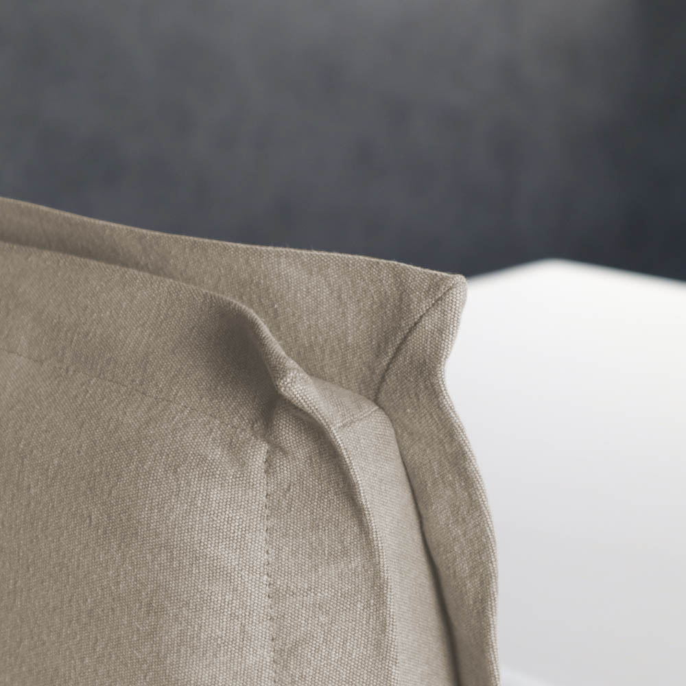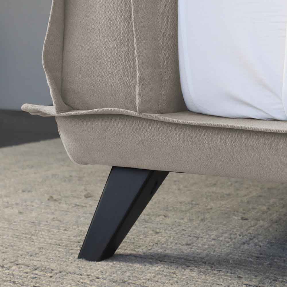 Disponível em tecidos exclusivos de alto padrão e em medidas para o tamanho (queen 1,60 m de largura), esta cama é estruturada em madeira de reflorestamento de Eucalipto Saligna.