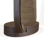 O Espelho Zee é fabricado em MDF revestido em lâmina natural de madeira Jequitibá ou Nogueira.