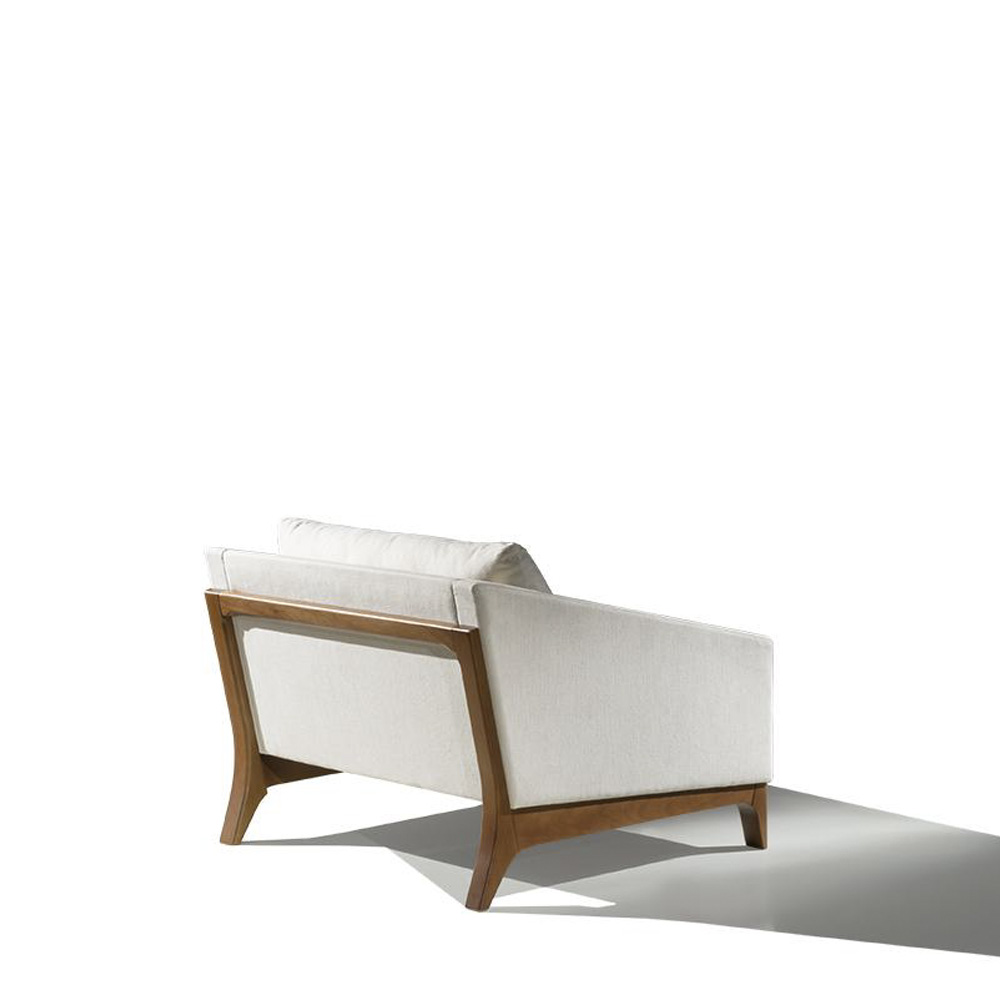 Poltrona Bella tem design de linhas puras, valorizando detalhes da base de madeira subindo na parte de trás. Muito conforto com sua almofada de encosto solta e dimensões valorizadas.