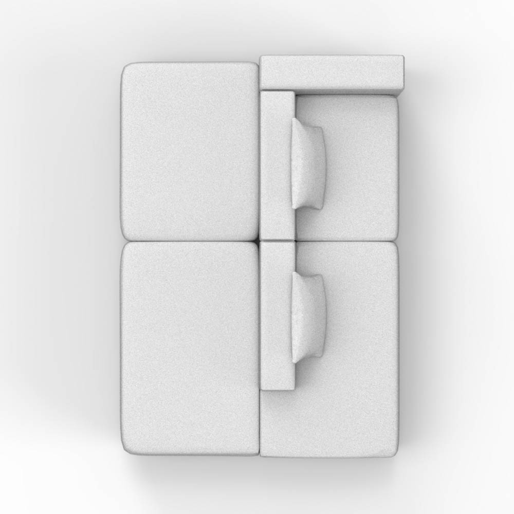 1 Módulo assento com braço de 25cm + 1 módulo assento alongado sem braços + 2 módulos assento pufe.